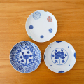■商品名 丸皿(3柄)/染付石垣紋・染付伊万里牡丹紋・染付地紋丸紋